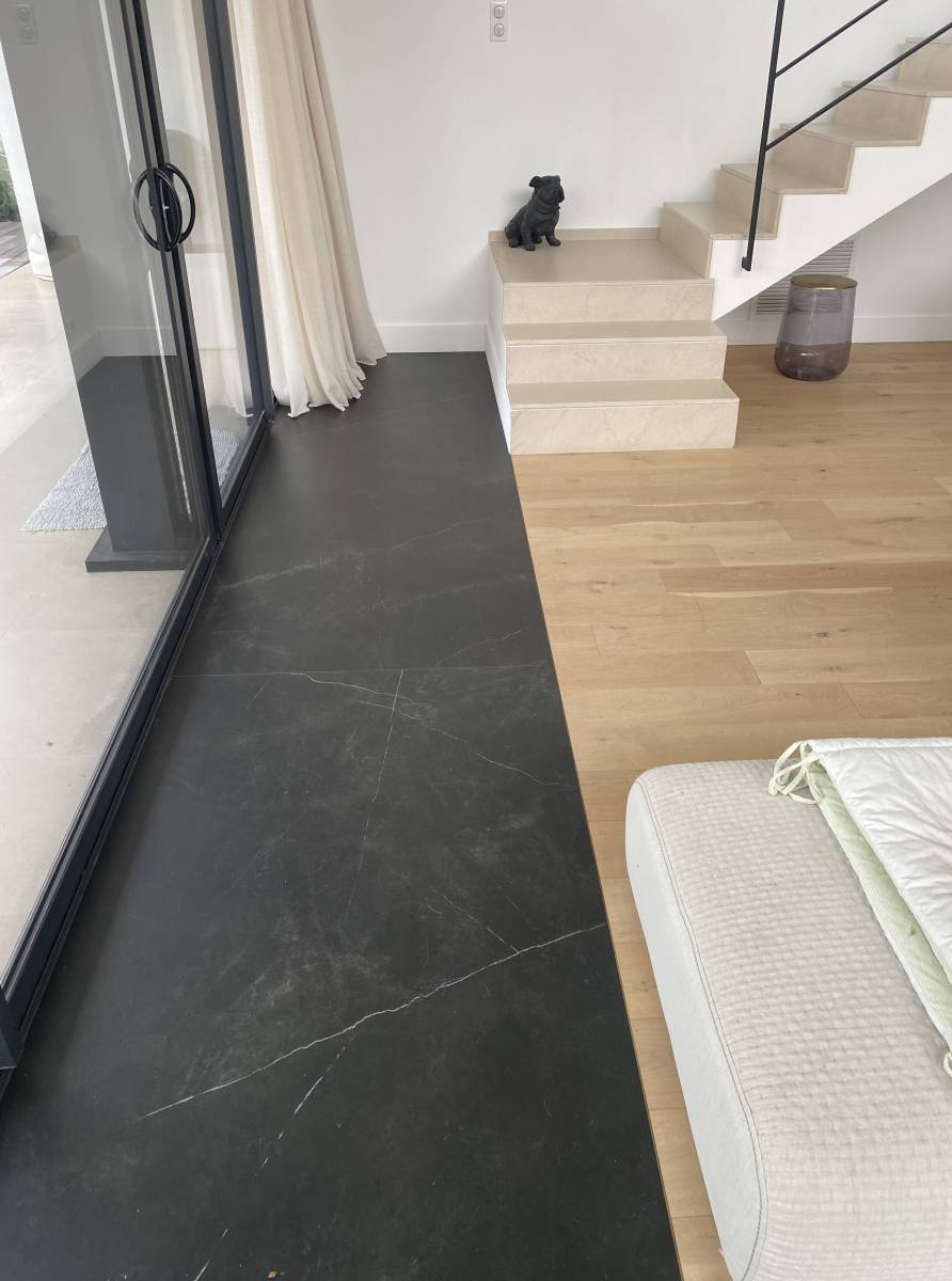 Eléments Carrelage vous propose de découvrir une nouvelle réalisation pour un alliage parfait entre carrelage noir et parquet pour un rendu d'exception qui pourrez vous donner des idées…