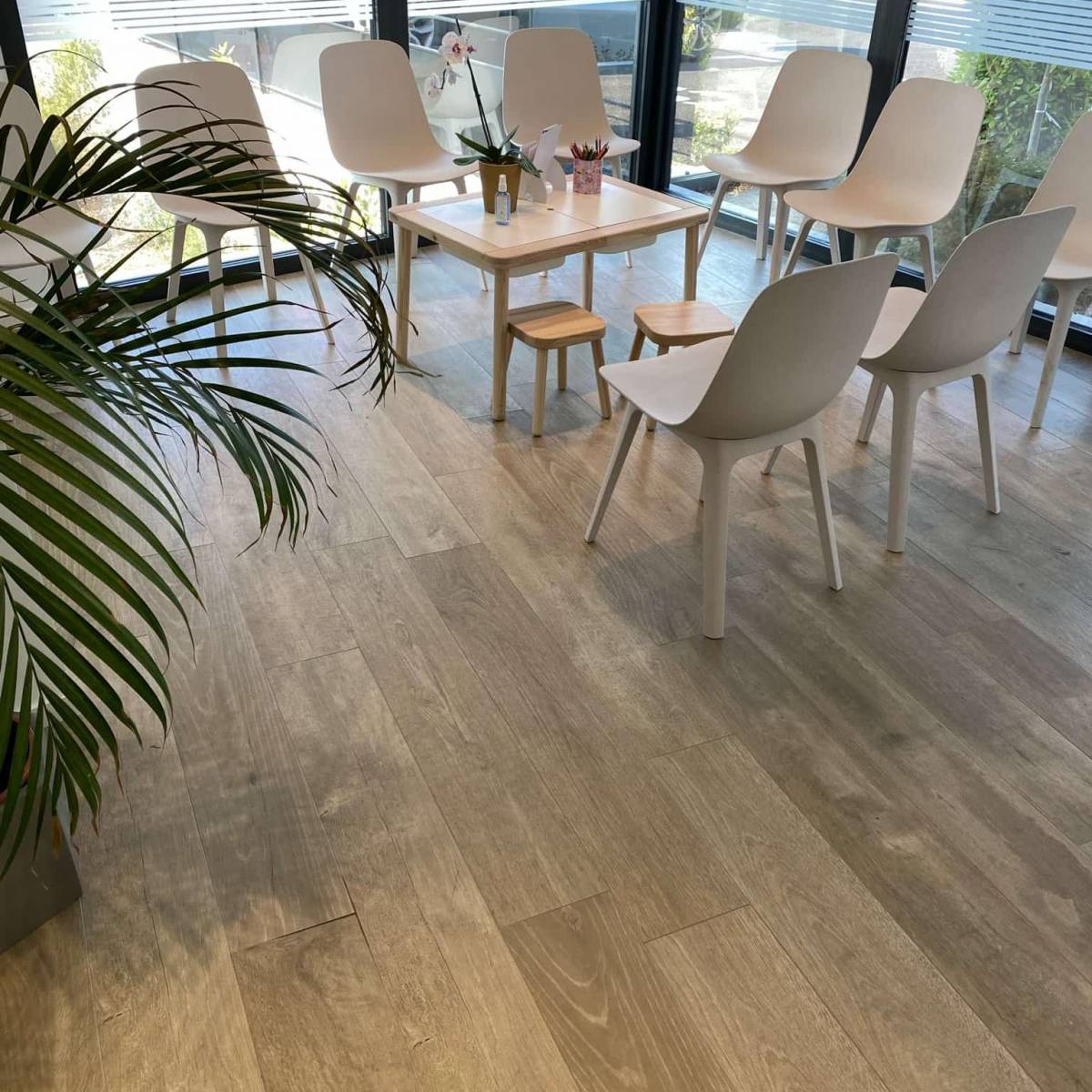 Eléments Carrelage vous propose de découvrir une réalisation qui plaira autant aux particuliers qu'aux professionnels. Ici, notre client à opter pour du carrelage imitation parquet de la série Woodsense Ragno avec une finition naturelle et un coloris beige.