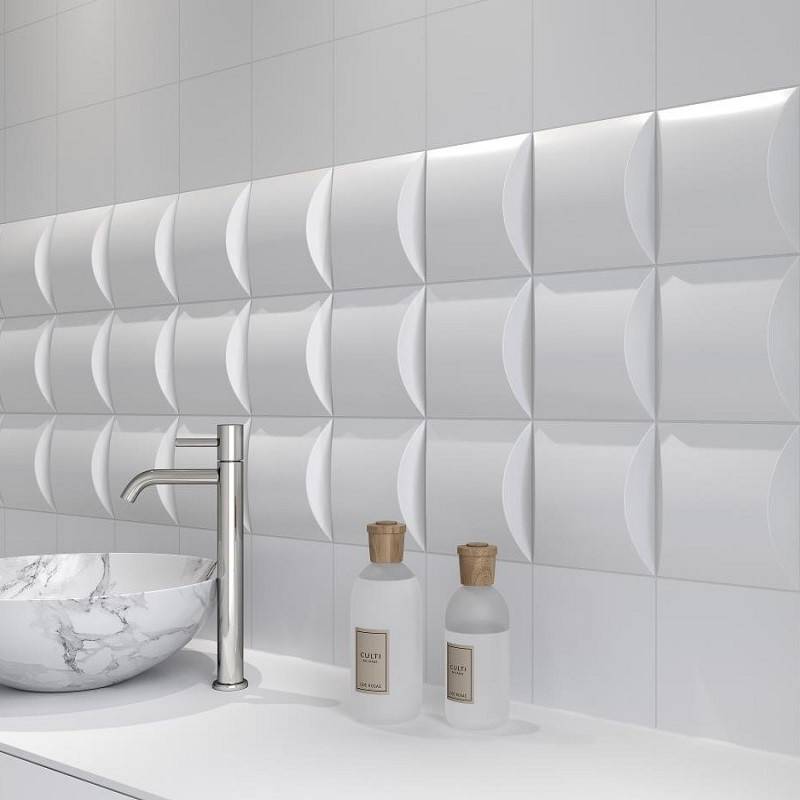 1. Blanc ou neutre : Les carreaux 3D blancs ou neutres sont intemporels et peuvent s’intégrer facilement dans de nombreuses esthétiques. Ils peuvent créer un effet de texture subtil tout en maintenant une apparence propre et lumineuse.