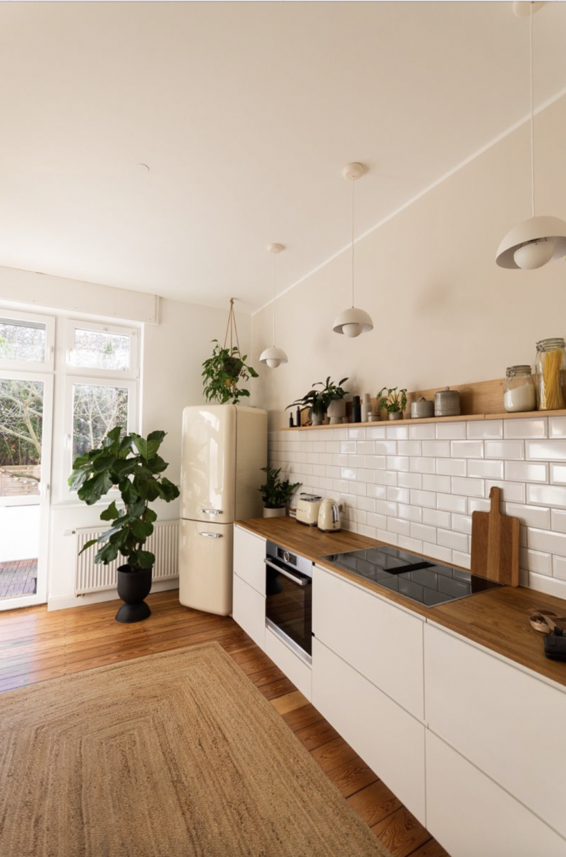 Le carrelage rétro est généralement utilisé pour habiller la crédence d’une cuisine dû à son petit format qui se pose très facilement entre le plan de travail et les elements muraux.